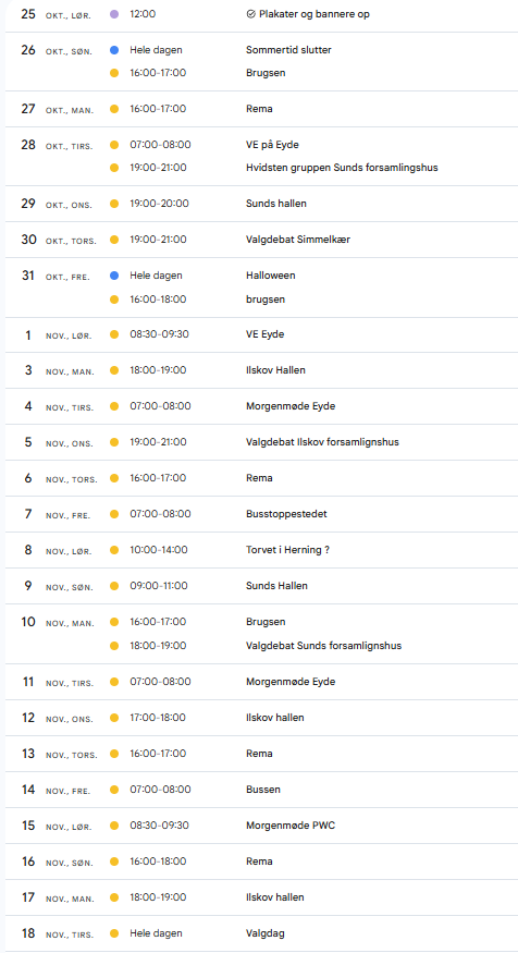 Min kalender ser sådan ud indtil valget d 18/11 2025.